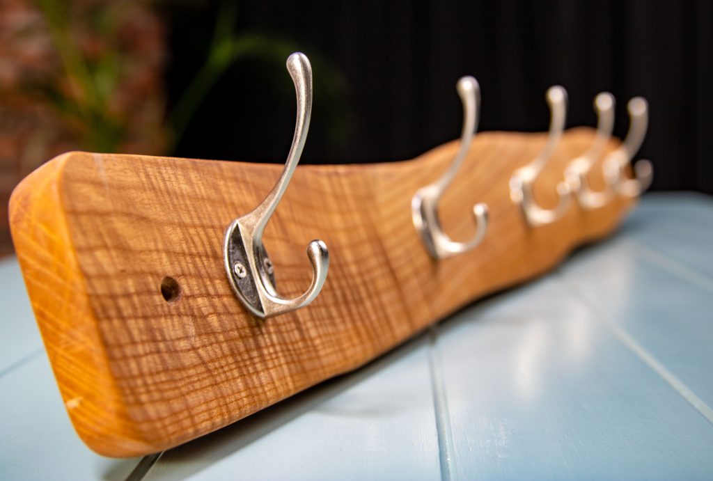 Crafted from a single piece of natural timber with smooth curves and a warm finish, this handmade rack brings rustic character to any hallway or porch.